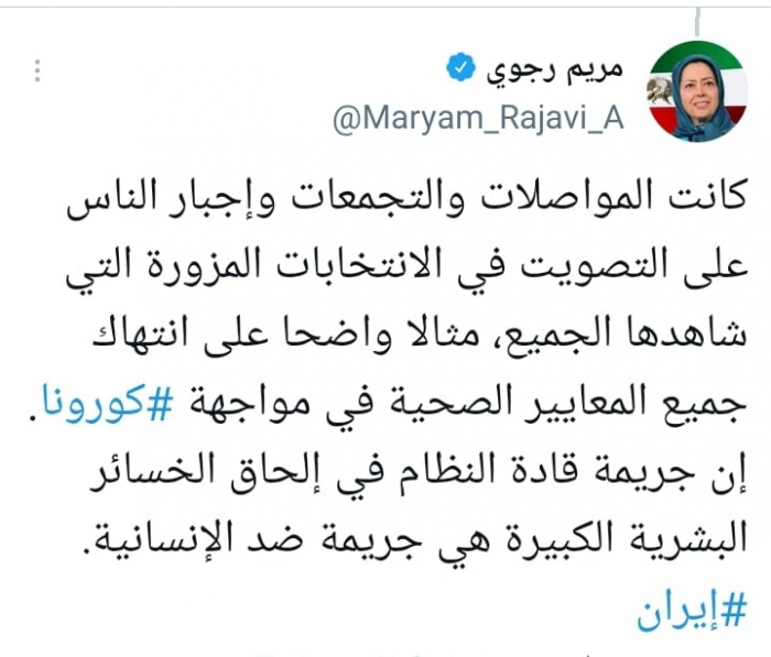 وأشارت إلى أنه: "كانت المواصلات والتجمعات وإجبار الناس على التصويت في الانتخابات المزورة التي شاهدها الجميع، مثالا واضحا على انتهاك جميع المعايير الصحية في مواجهة كورونا".