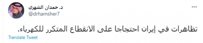 وكتب في تغريدة عبر "تويتر" رصدها "المشهد العربي": "تظاهرات في إيران احتجاجا على الانقطاع المتكرر للكهرباء".