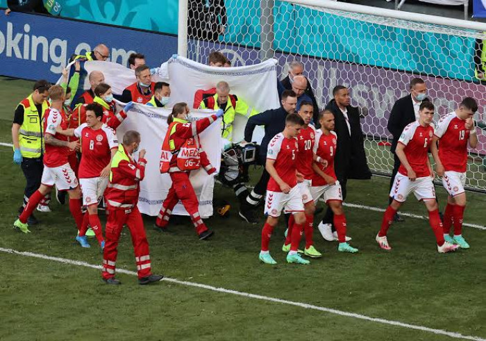 وخضع إريكسن لإنعاش قلبي رئوي في أرض الملعب، وعاد قلبه ينبض بعد الاستعانة بجهاز الصدمات الكهربائية، قبل نقله إلى المستشفى.