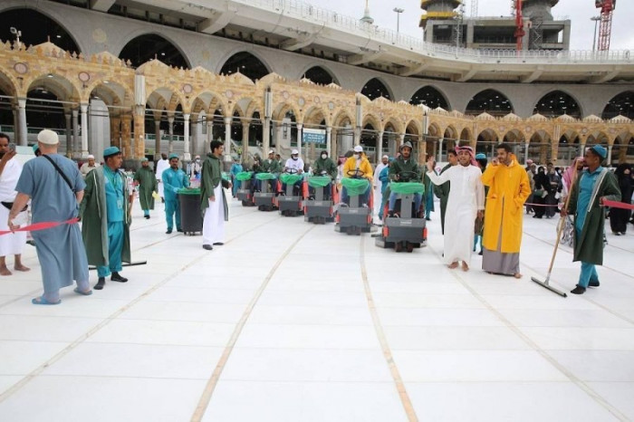 استعدادًا للحج.. 4 آلاف عامل يعقمون المسجد الحرام