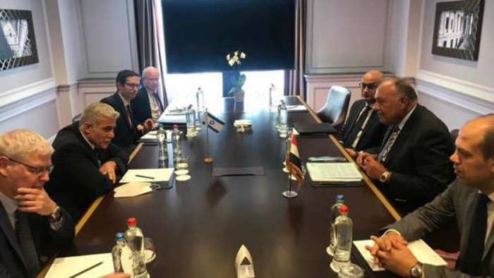 جاء ذلك خلال لقاء بنظيره الإسرائيلي، يائير لابيد، في بروكسل، مؤكدا أن القاهرة لن تتوانى عن دعم كافة الجهود الدولية وصولًا إلى تحقيق تلك الغاية، والتنسيق مع مختلف الأطراف الفاعلة بشأنها.