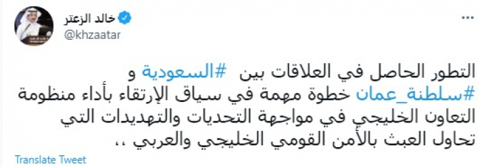 الزعتر: تطور العلاقات بين السعودية وعُمان خطوة مهمة