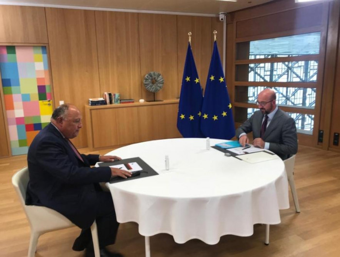 سلّم وزير الخارجية المصري سامح شكري اليوم، رئيس المجلس الأوروبي شارل ميشيل، رسالة من الرئيس المصري عبدالفتاح السيسي.