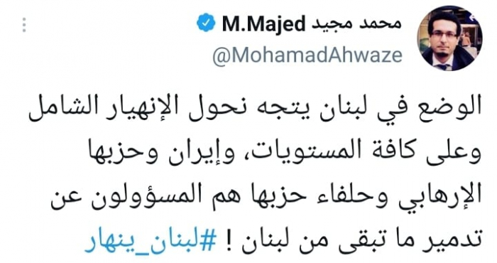 مجيد: انهيار لبنان مسؤولية حزب الله وإيران