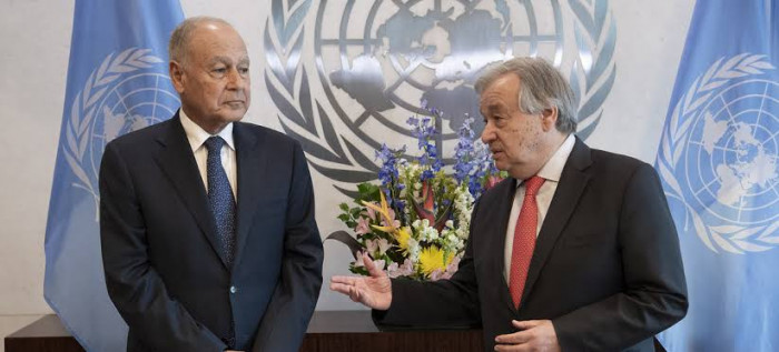 بحث الأمين العام لجامعة الدول العربية أحمد أبوالغيط مع السكرتير العام للأمم المتحدة أنطونيو غوتيريش، عددا من الموضوعات والأزمات والتطورات الإقليمية الهامة، وسبل تنسيق المواقف للتعامل معها.