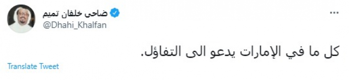 وقال في تغريدة عبر "تويتر" رصدها "المشهد العربي": "كل ما في الإمارات يدعو إلى التفاؤل".