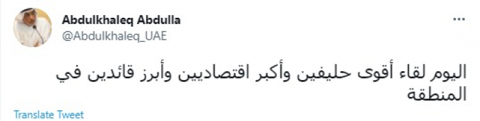 وقال في تغريدة عبر "تويتر" رصدها "المشهد العربي": "اليوم لقاء أقوى حليفين وأكبر اقتصاديين وأبرز قائدين في المنطقة".