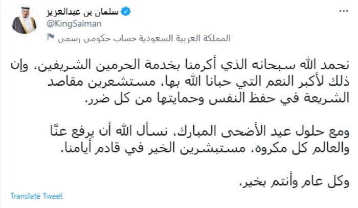 الملك سلمان عن عيد الأضحى: نستبشر الخير في قادم أيامنا
