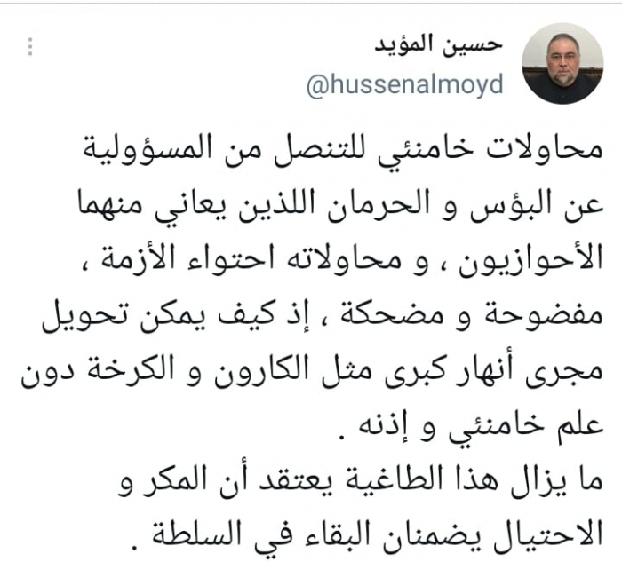 المؤيد: محاولات خامنئي التهرب من البؤس في الأحواز مفضوحة