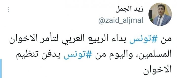 اعتبر زيد الجمل السكرتير الصحفي لرئيس المجلس الانتقالي الجنوبي أن الأحداث في تونس تضع نهاية لتنظيم الإخوان الإرهابي هناك.