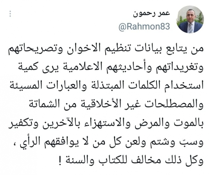 رحمون: بيانات الإخوان تحمل اتهامات بالتكفير لخصومهم