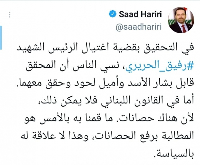واصل سعد الحريري، رئيس وزراء لبنان الأسبق، الدعوة إلى رفع الحصانات عن المسؤولين لملاحقة المتهمين في قضية انفجار مرفأ بيروت.