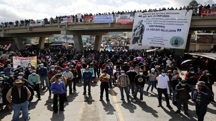 طالب متظاهرون في جواتيمالا، رئيس البلاد أليخاندرو جامماتى والمدعي العام ماريا بوراس بالتنحي.