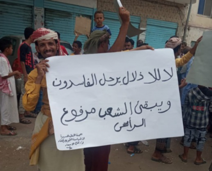 ورددوا هتافات وشعارات رافضة لغياب الرقابة على الأسواق، والتسعير العشوائي للمواد الغذائية، مطالبين بطرد الفاسدين، وإنهاء حصار الجنوب خدميًا واقتصاديًا.