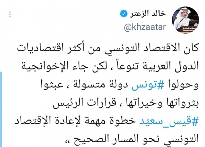 ورأى أن: "قرارات الرئيس قيس سعيد خطوة مهمة لإعادة الاقتصاد التونسي نحو المسار الصحيح".