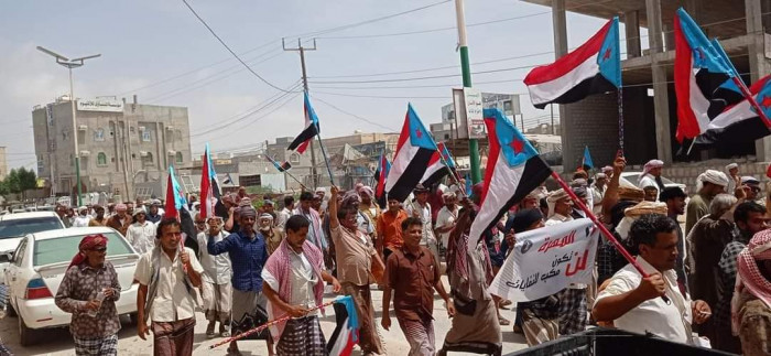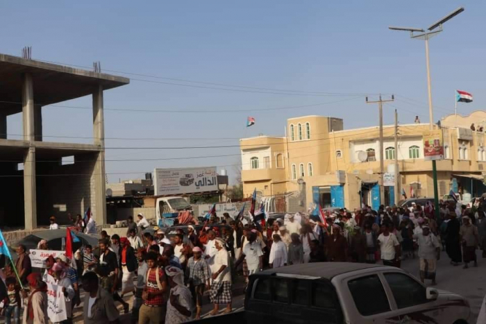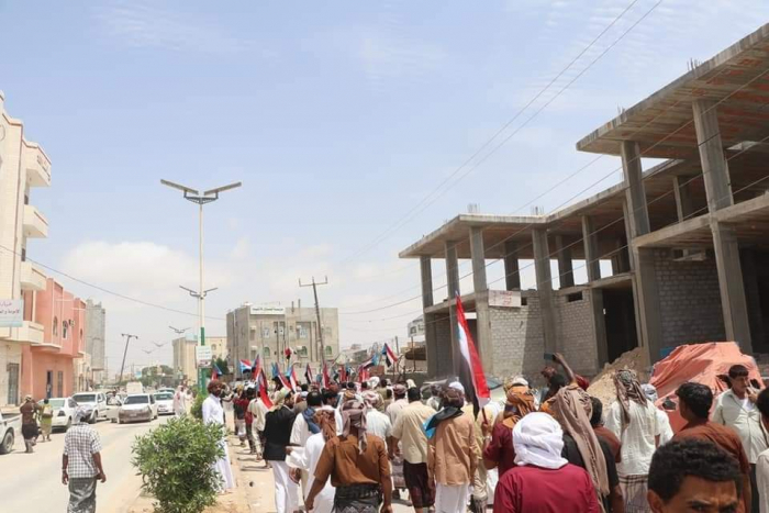 ورفع المشاركون بالمسيرة، عدة مطالب في مقدمتها تحسين الوضع المعيشي بالمحافظة، ووقف فساد مليشيا الشرعية.