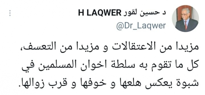 وأشار في تغريدة على حسابه بموقع التدوين المصغر تويتر، اليوم إلى أن هناك: "مزيد من الاعتقالات ومزيد من التعسف".