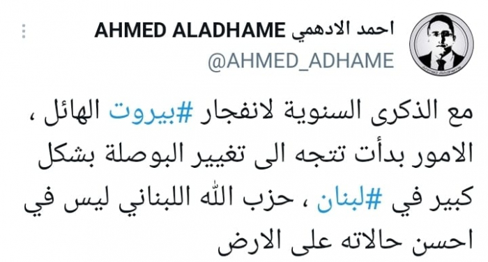وأوضح في تغريدة على حسابه بموقع التدوين المصغر تويتر، اليوم أنه: "مع الذكرى السنوية لانفجار بيروت الهائل، الأمور بدأت تتجه إلى تغيير البوصلة بشكل كبير في لبنان".