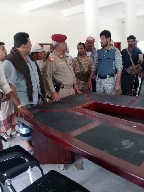 من جهته قدّم قائد قوات الحزام الأمني "جلال الربيعي"، شرحاً مفصلاً عن ما تم انجازه في المبنى الرئيسي لقيادة قوات الحزام الامني.