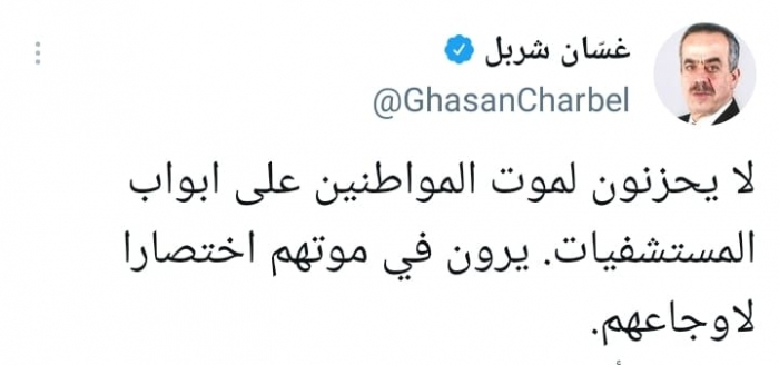 وأكد في تغريدة على حسابه بموقع التدوين المصغر تويتر، اليوم أنهم: "لا يحزنون لموت المواطنين على ابواب المستشفيات"، موضحا: "يرون في موتهم اختصارا لأوجاعهم".