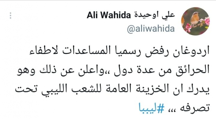 كشف الكاتب الصحفي علي أوحيدة، أن رفض الرئيس التركي رجب طيب أردوغان المساعدات الخارجية لإطفاء الحرائق نتيجة اعتماده على الخزينة الليبية.