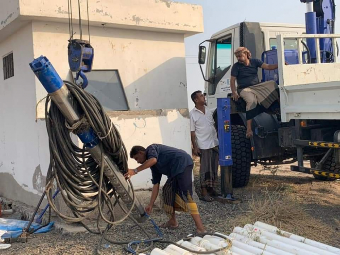 واصلت الفرق الفنية اليوم الأربعاء، إنزال محركات مضخات الآبار إلى حقول مياه جديدة في العاصمة عدن.