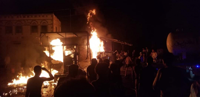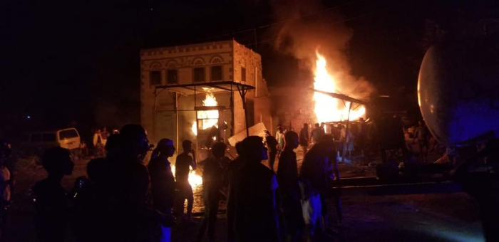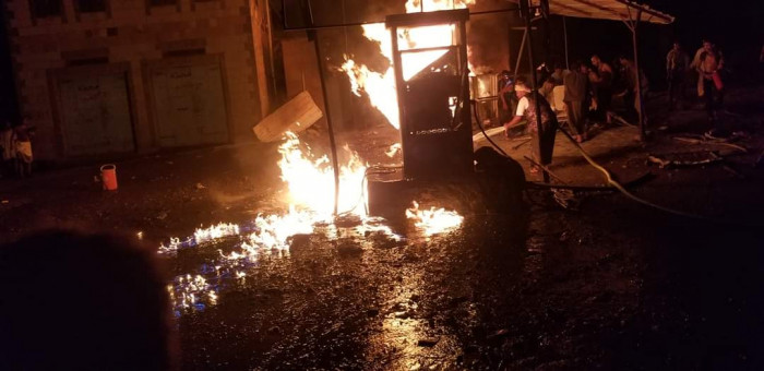 التهمت ألسنة النار محطة وقود غير رسمية، ليلة الخميس - الجمعة، في منطقة نجد قسيم، بمحافظة تعز الخاضعة لسيطرة مليشيا الشرعية الإخوانية.