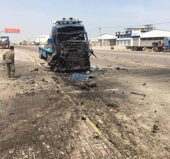 فجر مجهولون سيارة مُفخخة عن بُعد، منذ قليل، بالخط العام خلال عبور موكب مدير شرطة دار سعد في العاصمة عدن.