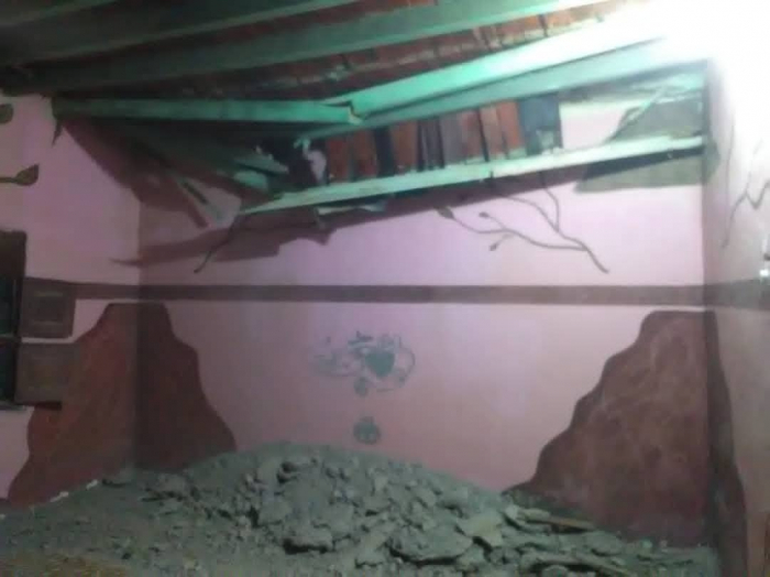 وانهار سقف المنزل وتشققت جدرانه، جراء سقوط الأمطار خلال الآونة الماضية، على المحافظة.