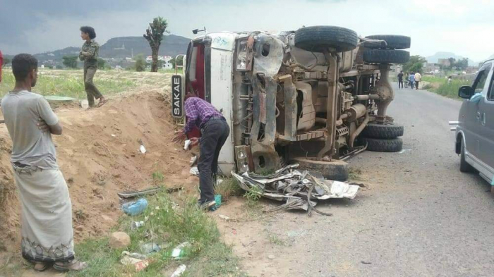 سقط خمسة ضحايا عصر اليوم الأحد، في حادث تصادم مروري بين شاحنة وحافلة نقل ركاب، في منطقة التربة، جنوبي محافظة تعز.
