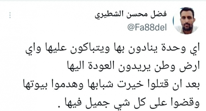 الشطيري يستنكر دعوات الوحدة على دماء الجنوبيين