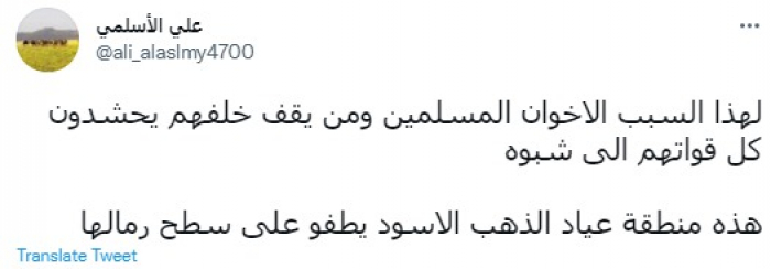 وقال في تغريدة عبر "تويتر" رصدها "المشهد العربي": "لهذا السبب الإخوان المسلمين ومن يقف خلفهم يحشدون كل قواتهم إلى شبوة".