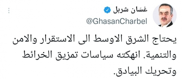 رأى الكاتب الصحفي غسان شربل أن المنطقة في حاجة للتنمية وليس الذيول من المليشيات والسياسيين المواليين للخارج.