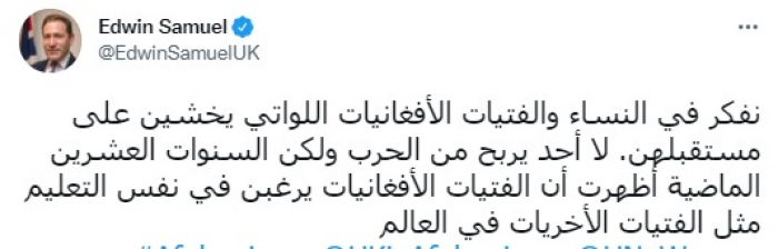 وجه الدبلوماسي البريطاني إدوين صموئيل، اليوم الاثنين، رسالة هامة للنساء الأفغانيات.