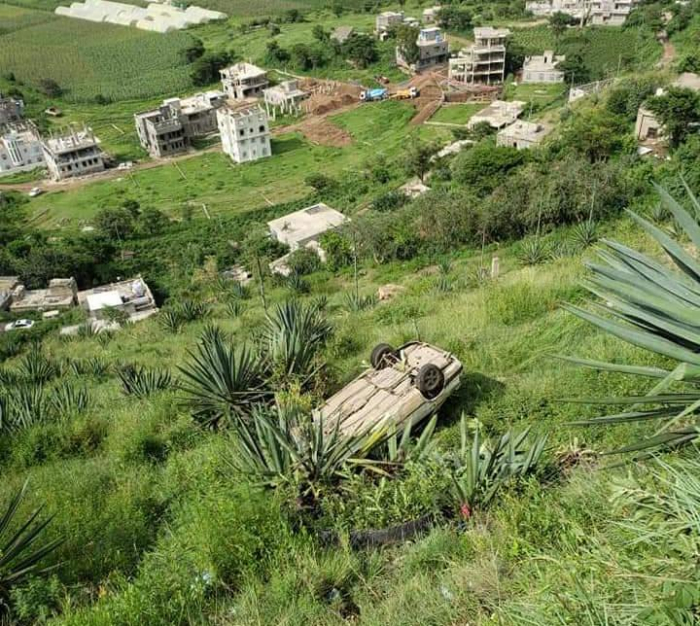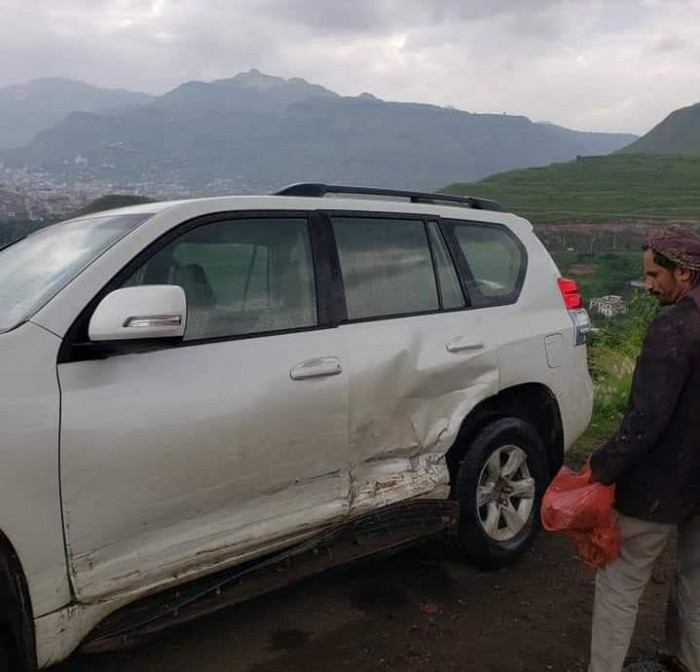 سقطت سيارة من أعلى منحدر في منطقة المحمول بمحافظة إب، عصر اليوم الجمعة، جراء حادث مروري.
