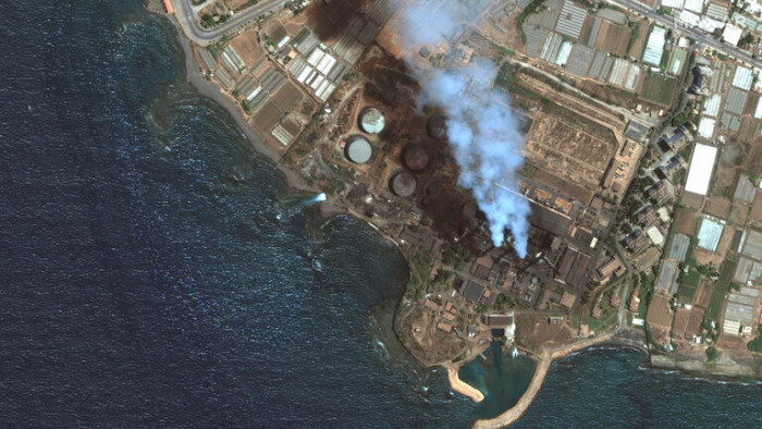 أظهر قمر صناعي روسي في صورة التقطها حجم التسرب النفطي الذي نشأ في البحر المتوسط من محطة بانياس في سوريا الأسبوع الماضي.