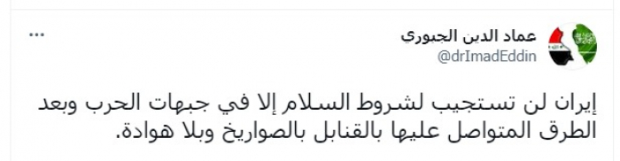 كشف المحلل السياسي العراقي عماد الدين الجبوري، اليوم الأحد، عن الحالة الوحيدة التي يمكن خلالها استجابة إيران لشروط السلام.
