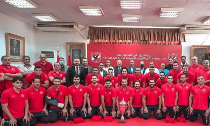 الأهلي يكرم فريق اليد بعد فوزه بكأس الكؤوس الإفريقية
