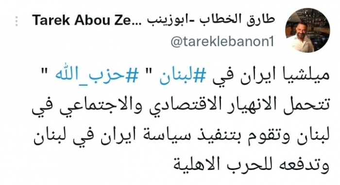واعتبر في تغريدة على حسابه بموقع التدوين المصغر تويتر، اليوم أن: "ميلشيا إيران في لبنان حزب الله، تتحمل الانهيار الاقتصادي والاجتماعي في لبنان".
