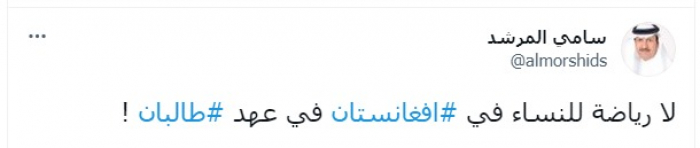 استنكر المحلل السياسي السعودي سامي المرشد، القيود الصارمة التي فرضتها حركة طالبان بعد سيطرتها على الحكم في أفغانستان، ومنها منع النساء من ممارسة الرياضة.