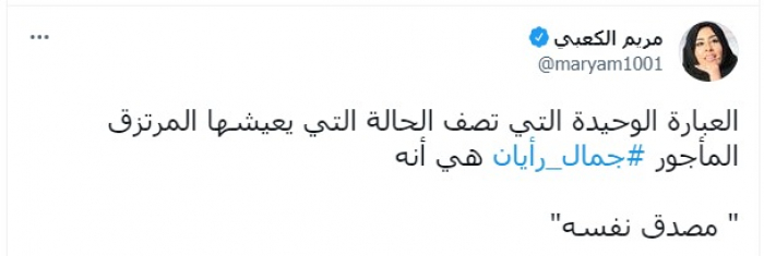 وكتبت في تغريدة عبر "تويتر"، اليوم: "العبارة الوحيدة التي تصف الحالة التي يعيشها المرتزق المأجور جمال رأيان هي أنه مصدق نفسه".