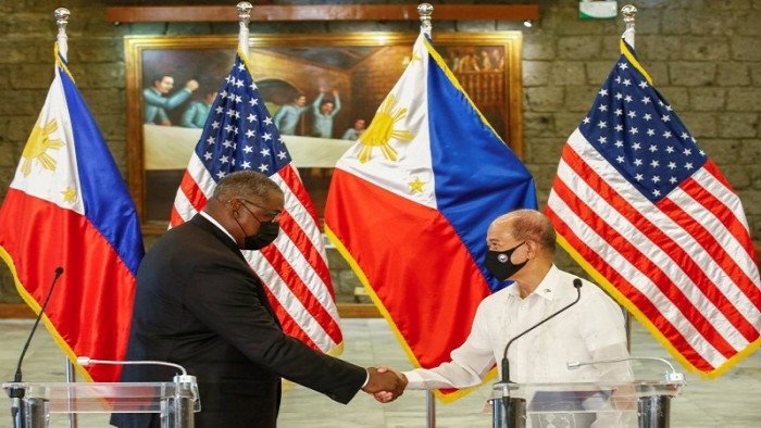 وشدد أوستن على التزامات المعاهدة الأمريكية التى تمتد إلى القوات المسلحة الفلبينية أو السفن العامة أو الطائرات في بحر الصين الجنوبي.