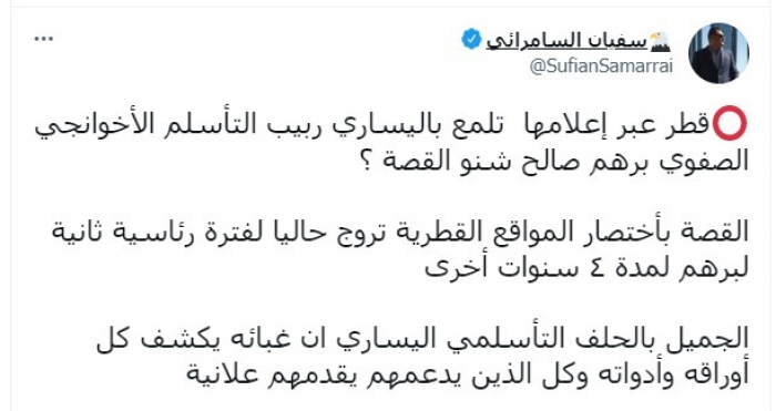 وأكد أن: "القصة باختصار، المواقع القطرية تروج حاليا لفترة رئاسية ثانية لبرهم لمدة 4 سنوات أخرى".