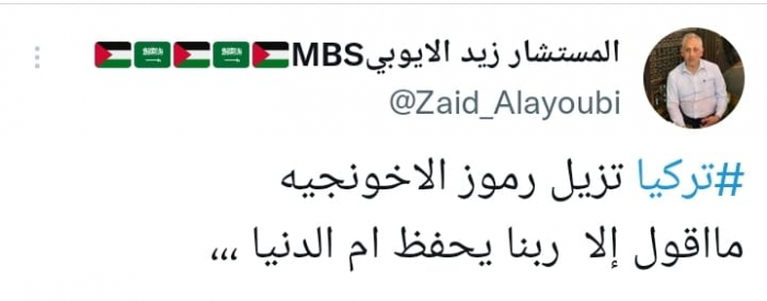 وقال في تغريدة على حسابه بموقع التدوين المصغر تويتر، اليوم أن: "تركيا تزيل رموز الإخونجية"، مضيفا: "ما أقول إلا ربنا يحفظ أم الدنيا".