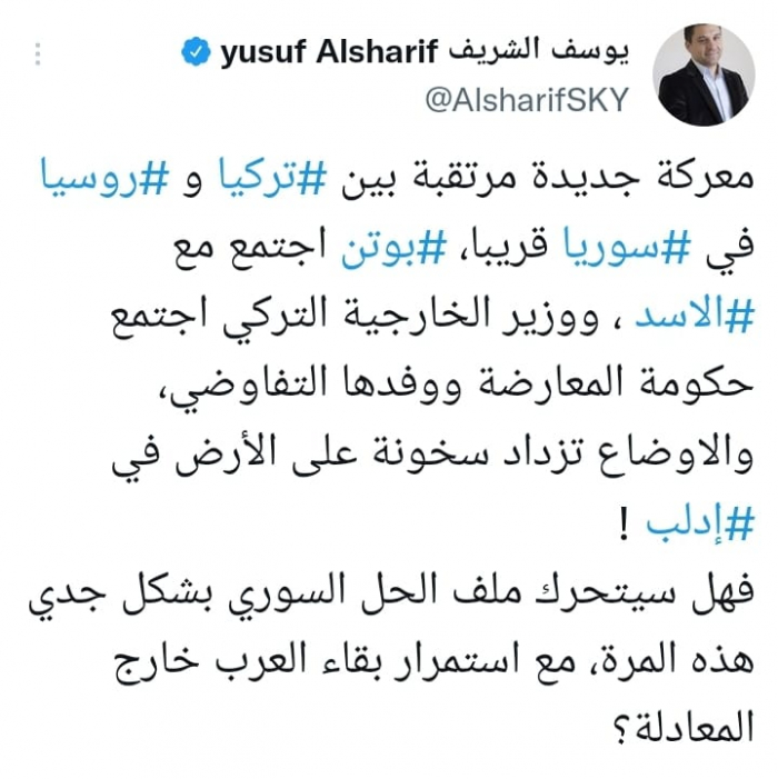 كشف الكاتب الصحفي يوسف الشريف عن معركة تدق تركيا وروسيا طبولها على الأرض السورية.