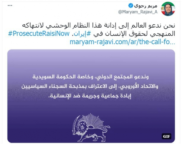 وتابعت: "ندعو المجتمع الدولي وخاصة الحكومة السويدية والاتحاد الأوروبي، إلى الاعتراف بمذبحة السجناء السياسيين، إبادة جماعية وجريمة ضد الإنسانية".