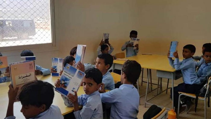 خليفة الإنسانية توزع المناهج التعليمية على مدارس سقطرى