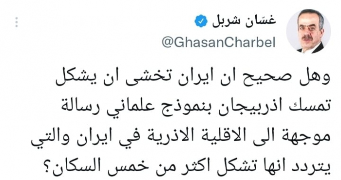 وتساءل في تغريدة على حسابه بموقع التدوين المصغر تويتر، اليوم: "هل صحيح أن إيران تخشى أن يشكل تمسك أذربيجان بنموذج علماني رسالة موجهة إلى الأقلية الأذرية في إيران والتي يتردد انها تشكل أكثر من خمس السكان؟".