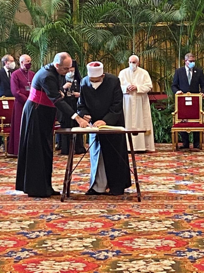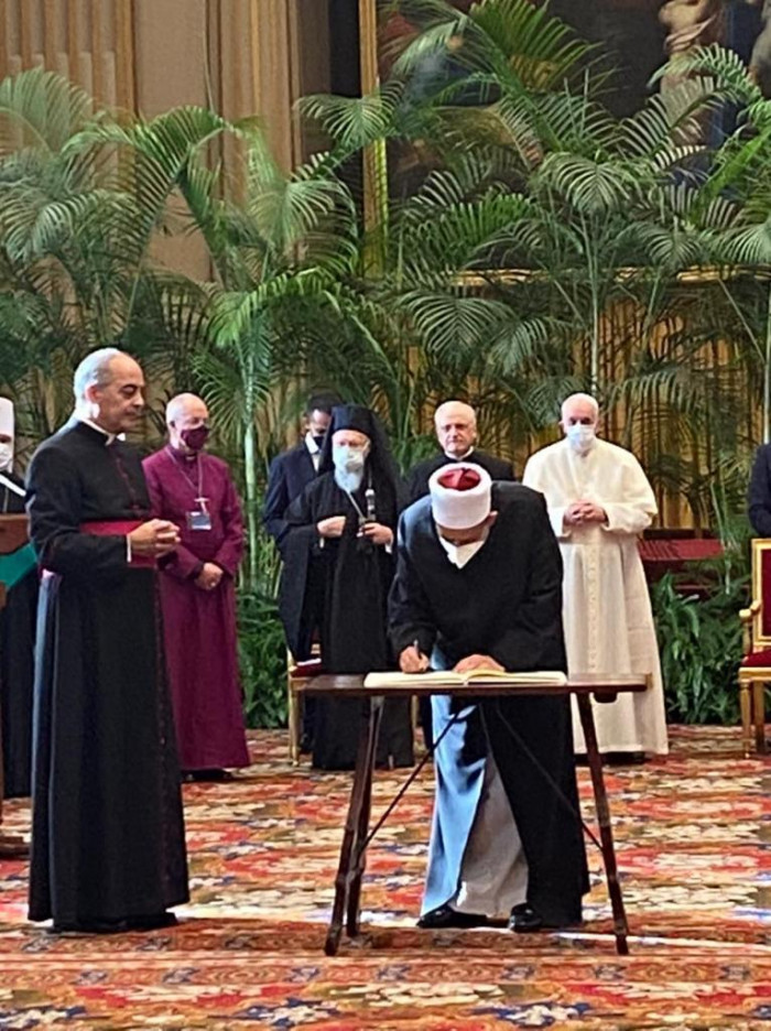 وقع الإمام الأكبر أ.د أحمد الطيب، شيخ الأزهر الشريف، على وثيقة نداء مشترك بين القادة الدينيين المشاركين في قمة قادة الأديان من أجل التغير المناخي، والتي عقدت اليوم الاثنين في الفاتيكان، تمهيدا لمؤتمر الأمم المتحدة السادس والعشرين لتغير المناخ.