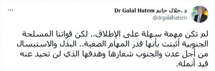 حاتم مشيدا بالقوات الجنوبية: رجال المهام الصعبة